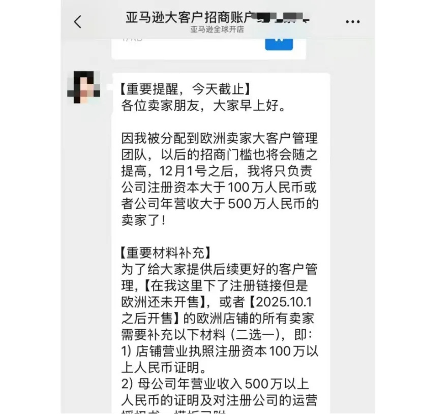 首先是企业入驻门槛的提高。根据目前传出的消息,2026年入驻亚马逊的企业必须满足两个条件之一:注册资本不低于100万元人民币,或者年营收超过1000万元。此外,个体户将不再被接受入驻,仅向企业账号开放注册。