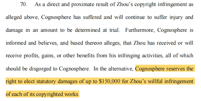 而且原告在起诉前已经联系过被告Zhou,要求下架相关内容,并通过邮件+联邦快递的方式,向被告Zhou发送正式的停止侵权函