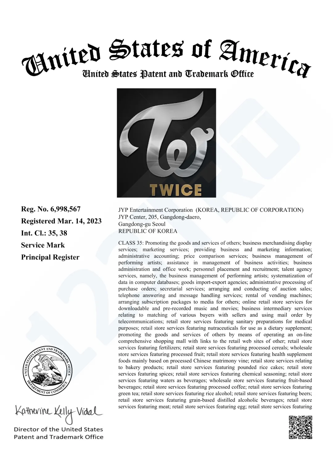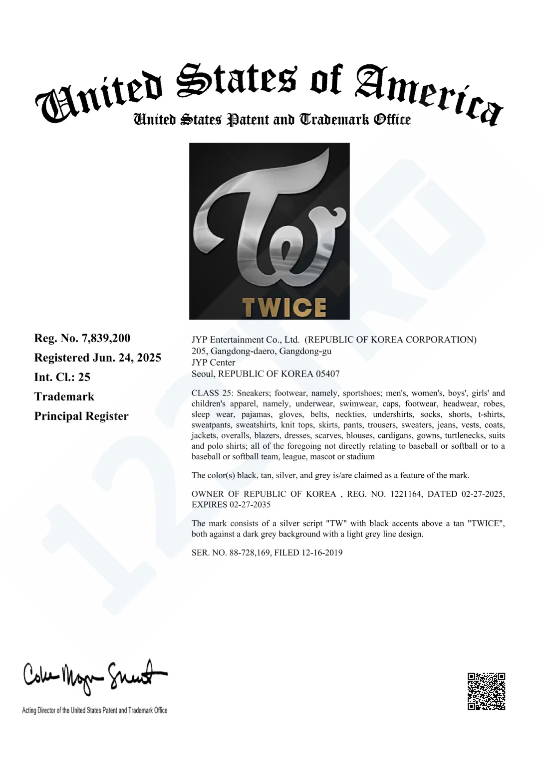 涉案商标的注册人是JYP,其商标的产品服务范围分别服饰、鞋类、商业服务及现场表演