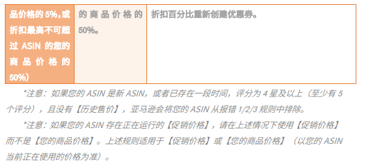 2025 年2 月起,亚马逊促销活动将抓取使用优惠券的折后价,促销价格不能高于近 30 天内的优惠券折后价。请您注意不要设置过高折扣的优惠券,以免影响后续促销价。