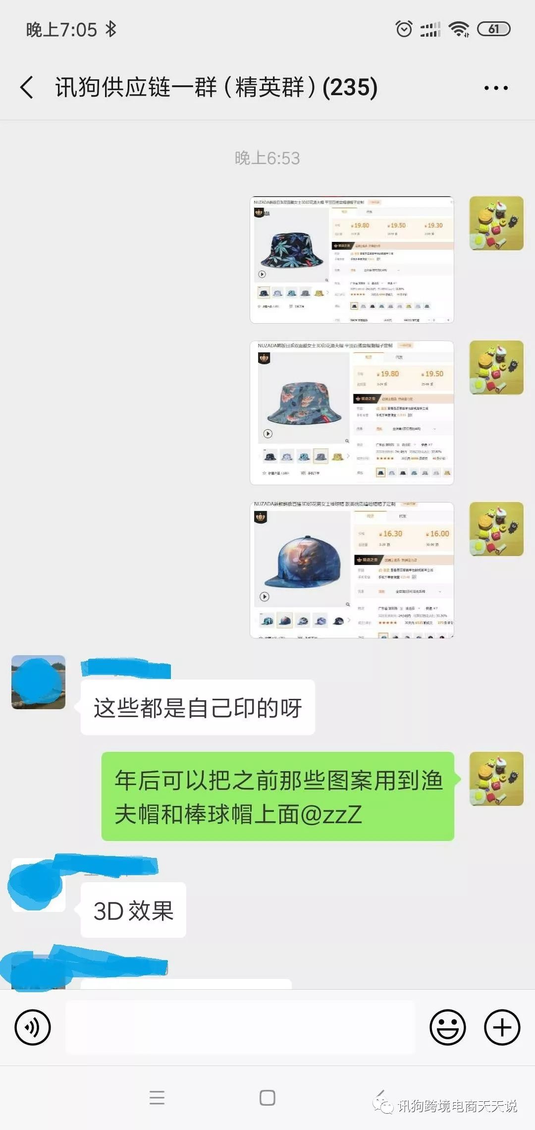 我们发现3D印花的渔夫帽和棒球帽是跨境电商的爆款,