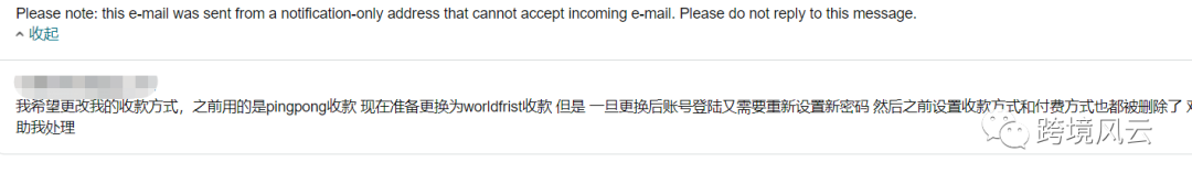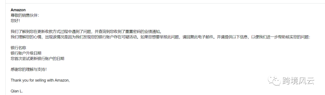 所以,在我们更换收款方式前,可以联系亚马逊客服团队,告知你需要更换收款方式,请帮助你联系相关团队解除限制,避免出现账户锁定的问题。如果出现以上问题,也可以根据以上case过程处理该流程