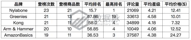 两款分别来自品牌Greenies与Taste of the Wild的宠物食品产品紧随其后,分别以2.29与4.29的平均排名成绩占领综合排名的第二、三位。