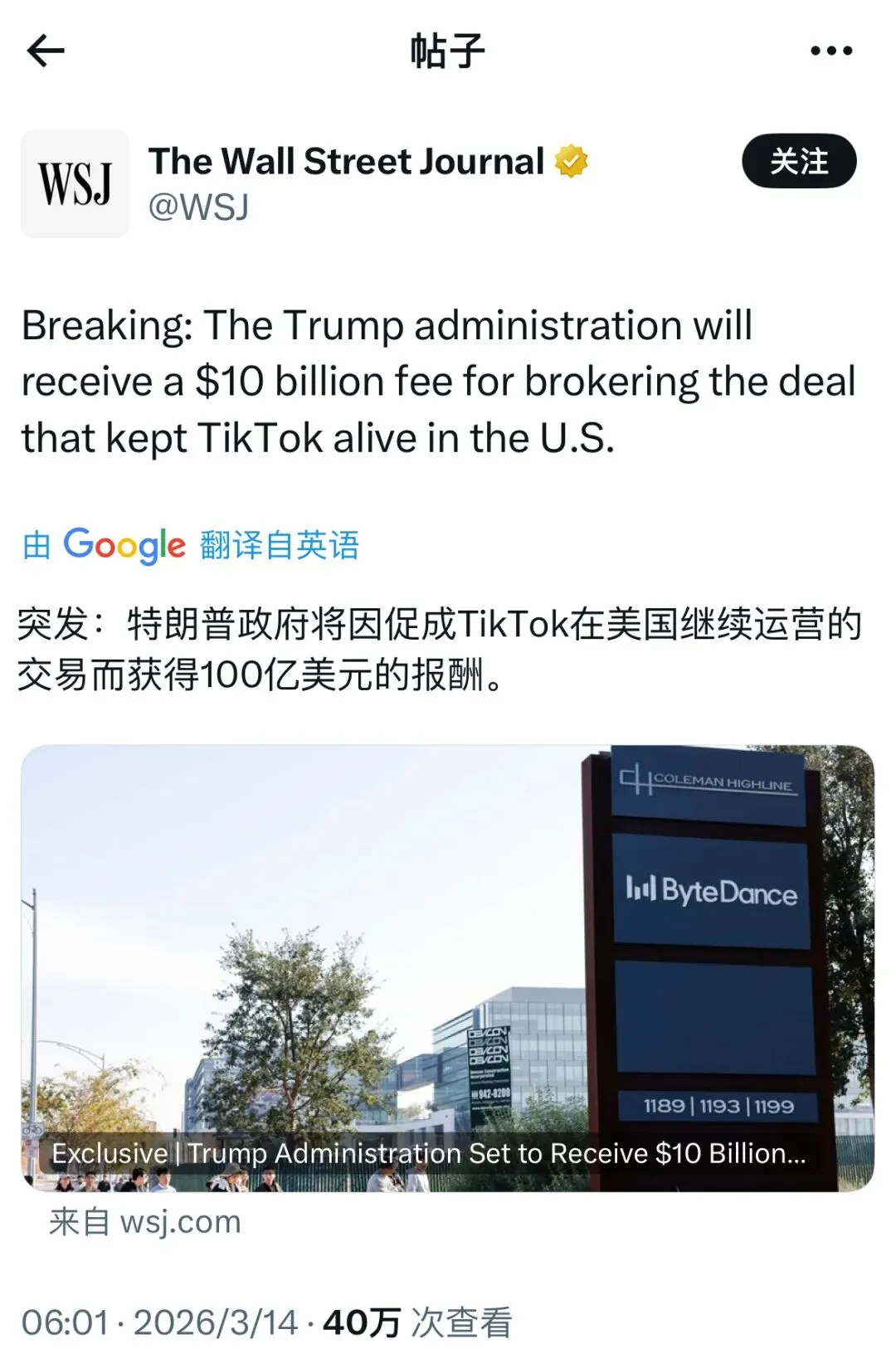 据外媒披露,在2026年初落定的TikTok美国业务重组中,特朗普政府正向背后的财团索要一笔高达100亿美元的费用。这笔款项被戏称为“中介费”,但如果真的全额落地,将成为全球商业史上最罕见、也最具争议的一笔“权力抽成”。