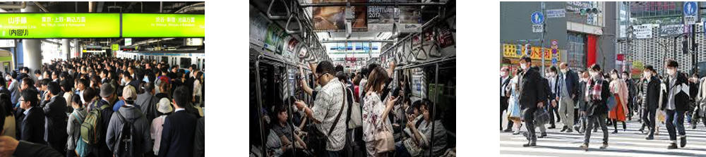 日本城市人口密度大,公共场所虽拥挤却非常有秩序。便利店、超市、贩卖机等便民设施随处可见。日本公共交通非常发达,民众多用地铁、电车等,只有旅游度假才会选择自驾。通勤常用,方便携带的小物件会频繁地出现在日本公共场景。