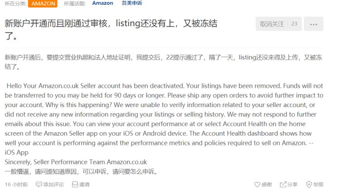 今天一早小编看到很多欧洲站的卖家在说刚注册完账号,并且通过了KYC审核,但listing还没上,账号又被冻结了。