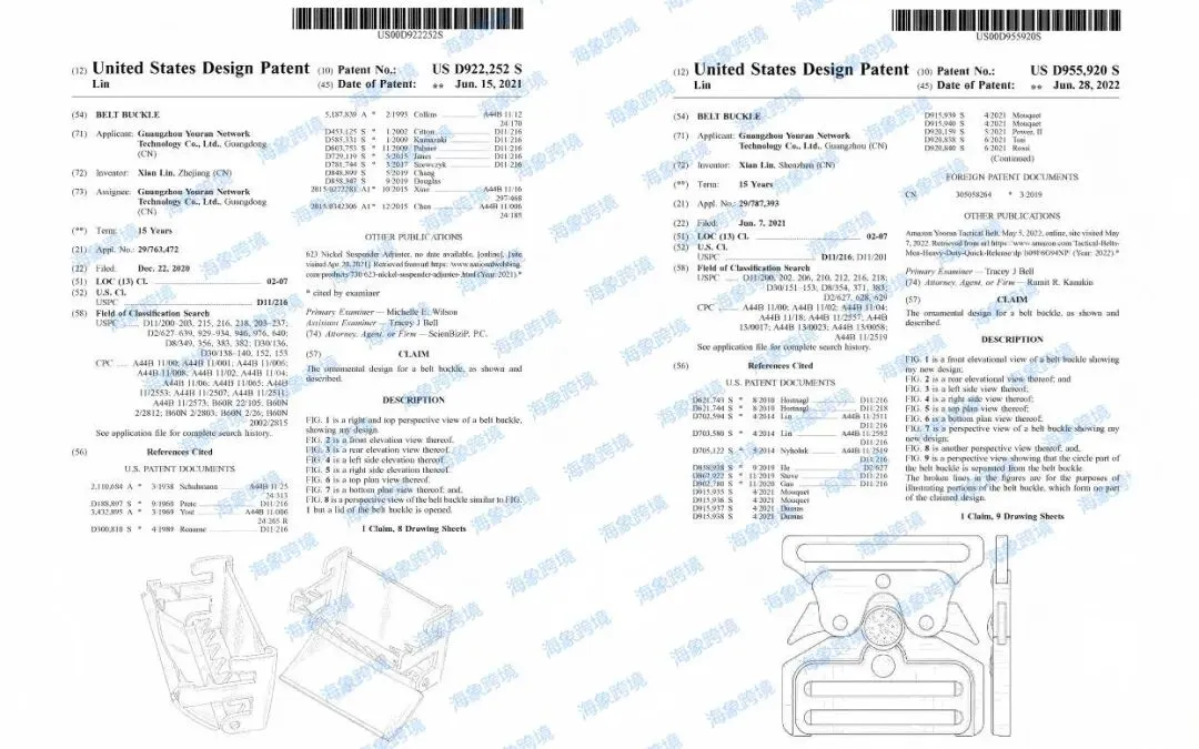 本案为国人原告,案件信息为密封状态,小编查询到原告名下有以下专利。专利产品是两款皮带扣,细节图如下请相关卖家注意排查避雷!