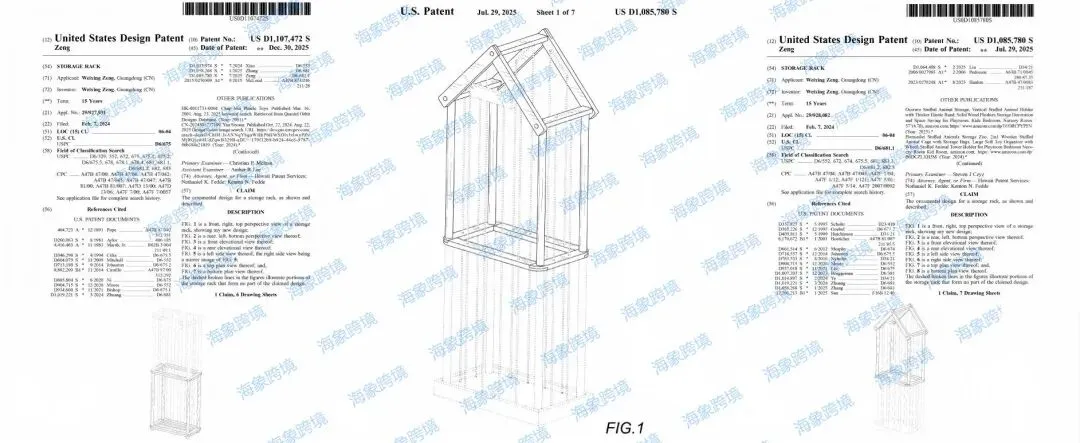 本案原告为国人卖家,主要销售存储架类产品,小编查询到原告名下有以下专利。专利产品是两款毛绒玩具收纳架,请相关卖家注意排查避雷!
