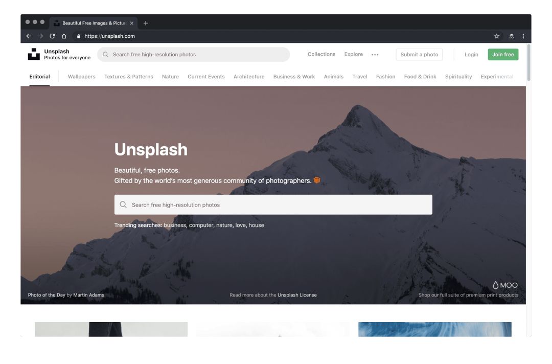 在设计、摄影和视频制作领域,Unsplash是人们最喜欢使用的网站之一,它拥有海量的精美素材,而且是免!费!的!这个网站上的照片深受大家的喜欢,因为它们的高质量可以让成品的质量飞速提升。在这个网站中,营销人员可以找到自己最喜爱的图片类型,从此打卡一片新世界。