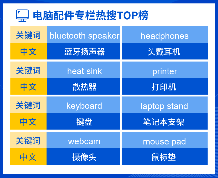 除了键盘鼠标等主要I/O设备之外,近来随着对健康生活的追求提高,消费者产生了新的消费需求。比如笔记本电脑支架:根据人体工程学,笔记本支架可以抬高笔记本屏幕的高度,改善坐姿,同时减少对颈椎、腰椎的劳损。卖家可选择多功能的笔记本支架上新,采用塑料材质更可降低成本,价格便宜;或是为久坐的上班族们选择合金材质的站立式电脑升降支架,单价也更高。