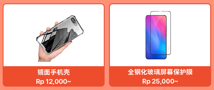 手机壳千千万,可爱风、酷飒风和简洁风等都能在印尼站点找到。目前站点火爆的手机壳是如下图中带有镜面的,方便出门在外的消费者随时补妆。手机膜关注点则比较简单,多要求实用优惠。最近各大手机厂商的新手机频繁发布,卖家可以抓紧上架最新型号的钢化膜,同时结合套餐优惠策略,适当让利,但也能让家一次买多。