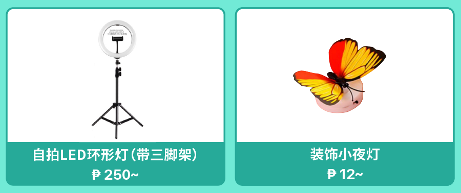 在生活相关的电子产品中,菲律宾消费者对灯具和灯饰也十分关注,比如用于自拍的网红灯、装饰性强的光控小夜灯和蘑菇灯。买家可以抓住消费者的娱乐需求,上新此类有趣又好玩的小物品。