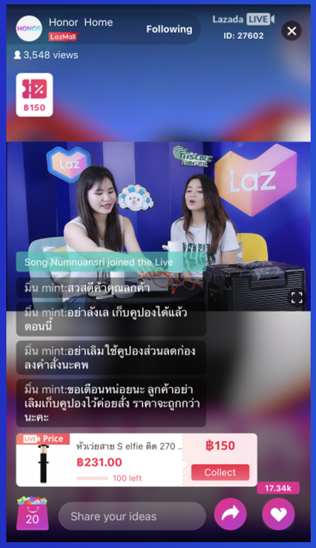 近期,华为荣耀跨境店铺在泰国站重磅开播。首次直播就吸引了几千余人次观看,线上互动反响热烈,效果颇佳!