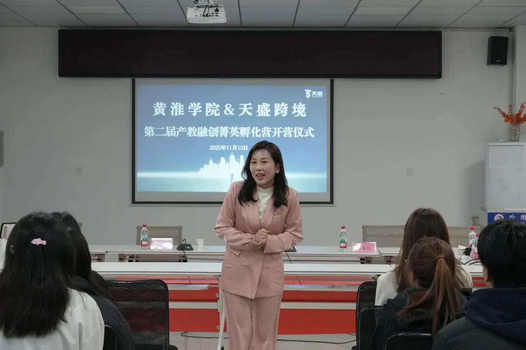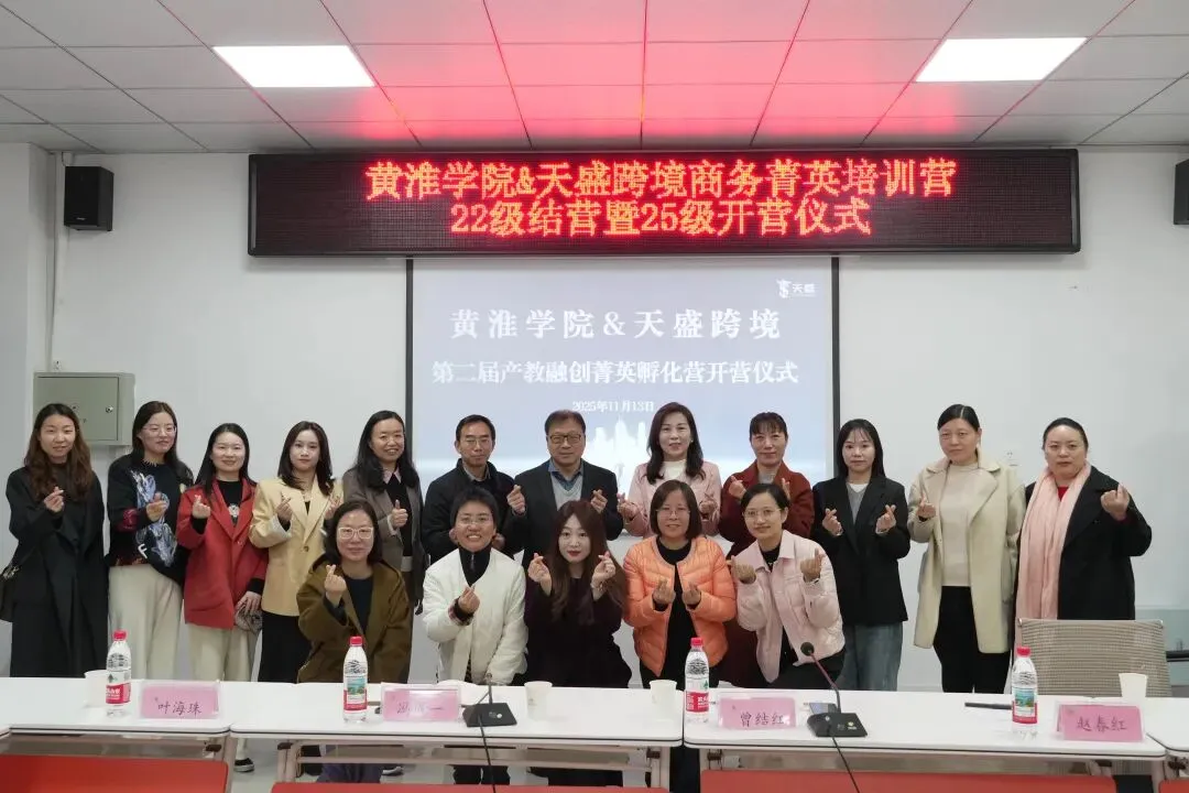 近日,天盛跨境人力资源总监曾结红女士率企业核心团队再度到访黄淮学院,全程参与天盛跨境&黄淮学院商务菁英培训营22级结营暨25级开营仪式,为校企合作再添浓墨重彩的一笔。