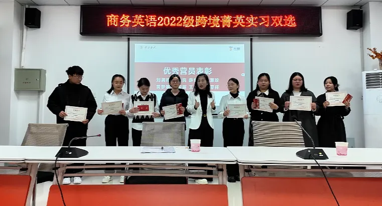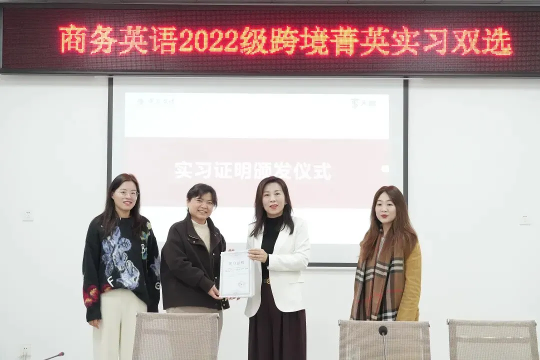 随后的成果表彰与认证环节,红姐将象征实训圆满完成的实习证明郑重递交至黄淮学院外国语学院副院长王新芳手中,标志着22级同学实训阶段的圆满完成;
