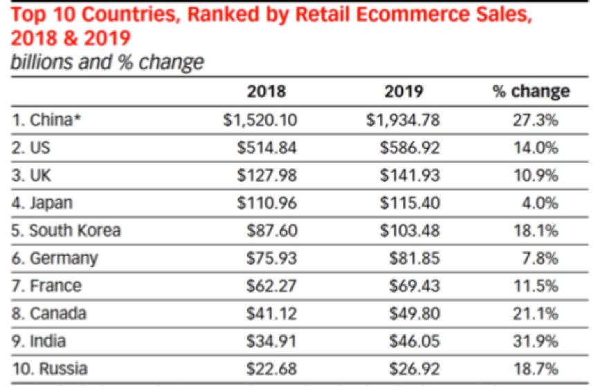 2018&2019电商排名前十国家