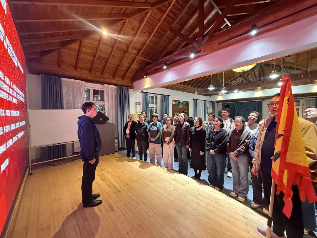 规划既明,承诺为契。会议进入庄严激昂的集体宣誓。在领誓人带领下,全体宣读必胜誓言:吾志所向,一往无前!万众一心,共创辉煌!
