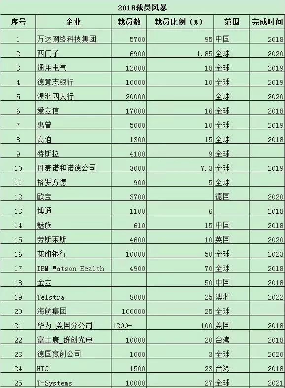 全球的裁员形势有多么严峻?一图以蔽之!看看这张表《2018年裁员风暴名单》,你作何感想呢?