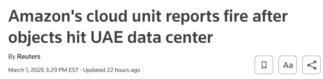 更令人忧心的是,次日再有消息称,AWS位于中东地区的三处数据中心遭无人机袭击——两处直接命中阿联酋境内设施,另一处位于巴林的设施因附近无人机爆炸受到波及,造成结构性损坏,恢复工作可能持续较长时间。