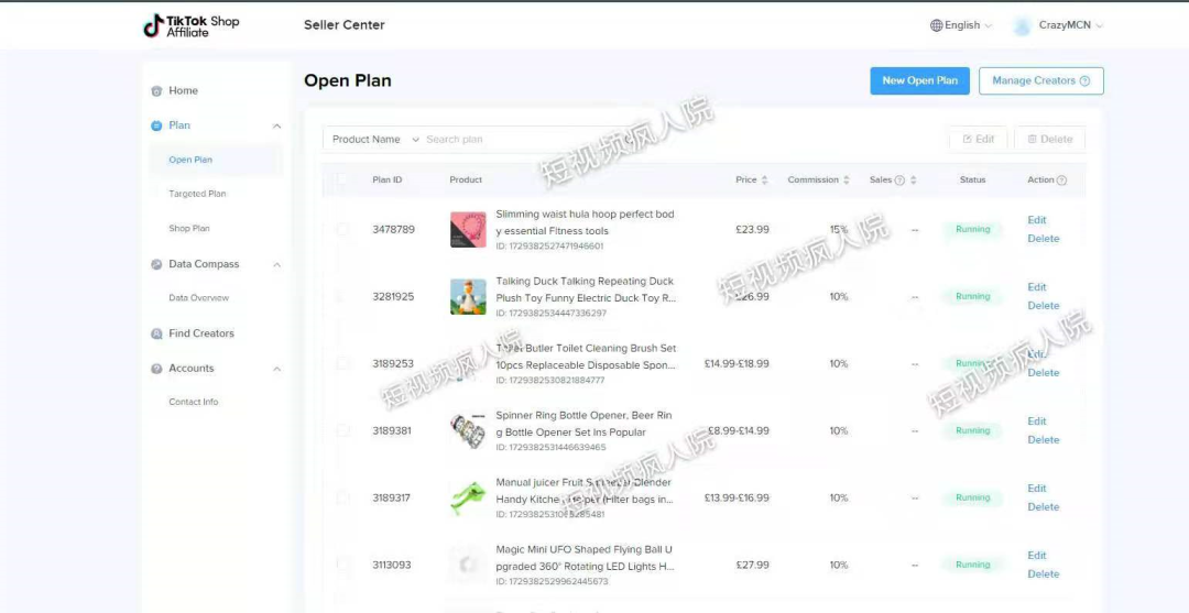 比如说,TikTok Shop还自带联盟营销入口,卖家可设置“定向计划”、“公开计划”、“店铺计划”三种营销方式,让TikTok达人帮你带货,获取佣金。