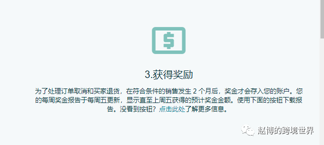 第三步,成交后会在销售发生后的2个月,奖金存入亚马逊账号。但不是直接给钱哈,主要是用于后续抵扣销售佣金,对于我们卖家其实也就是真金白银了。