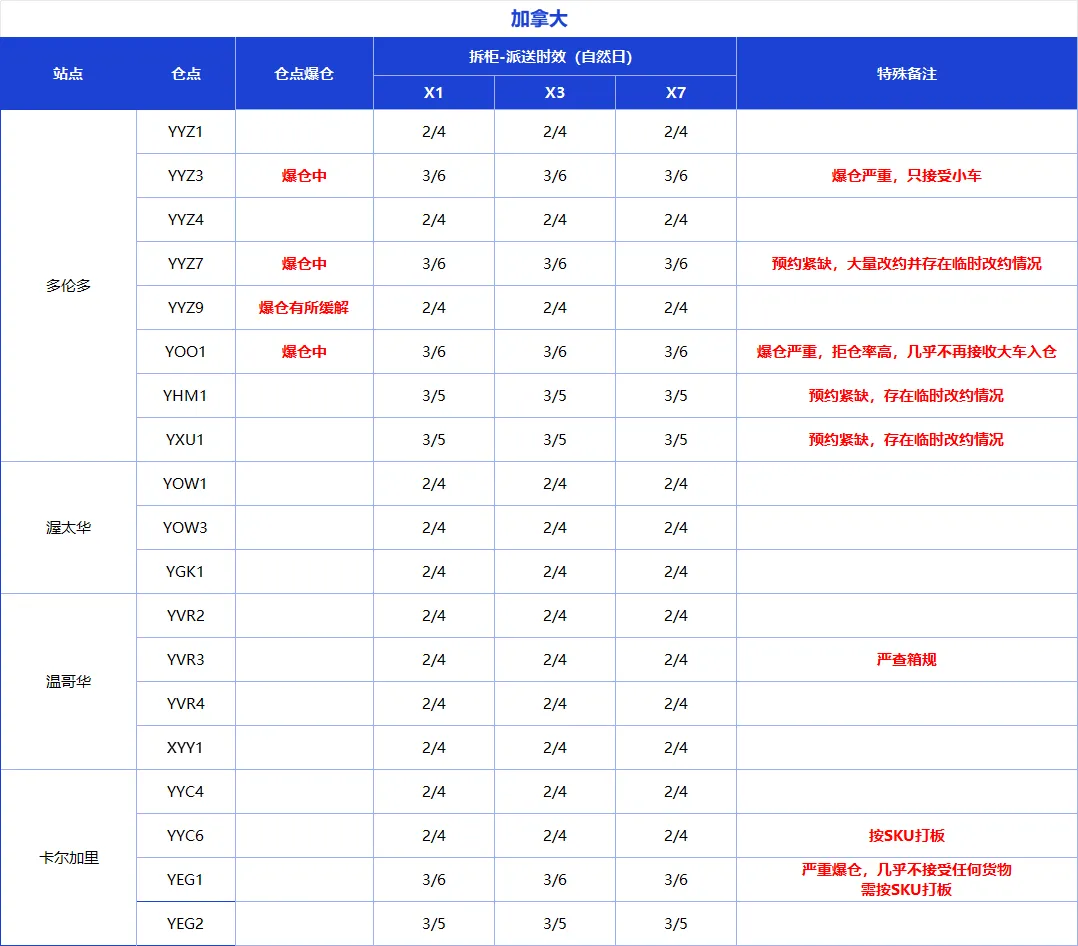近期,加拿大部分仓库出现爆仓情况,具体如下: