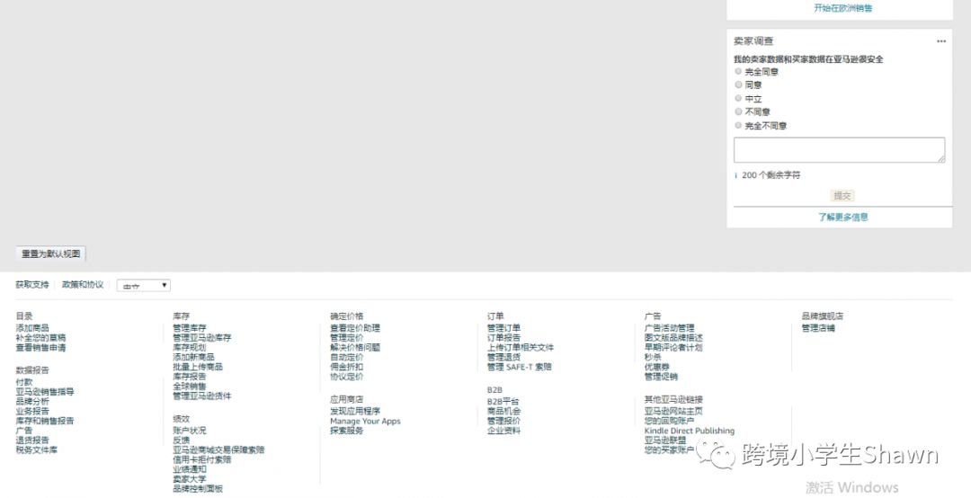 首先,为了方便讲解,我们将语言设置为中文,然后概览一下亚马逊后台的全貌: