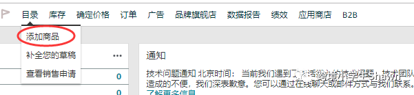 目录导航栏中最常用的功能就是“添加商品”,上传新品时就会用到。操作如下: