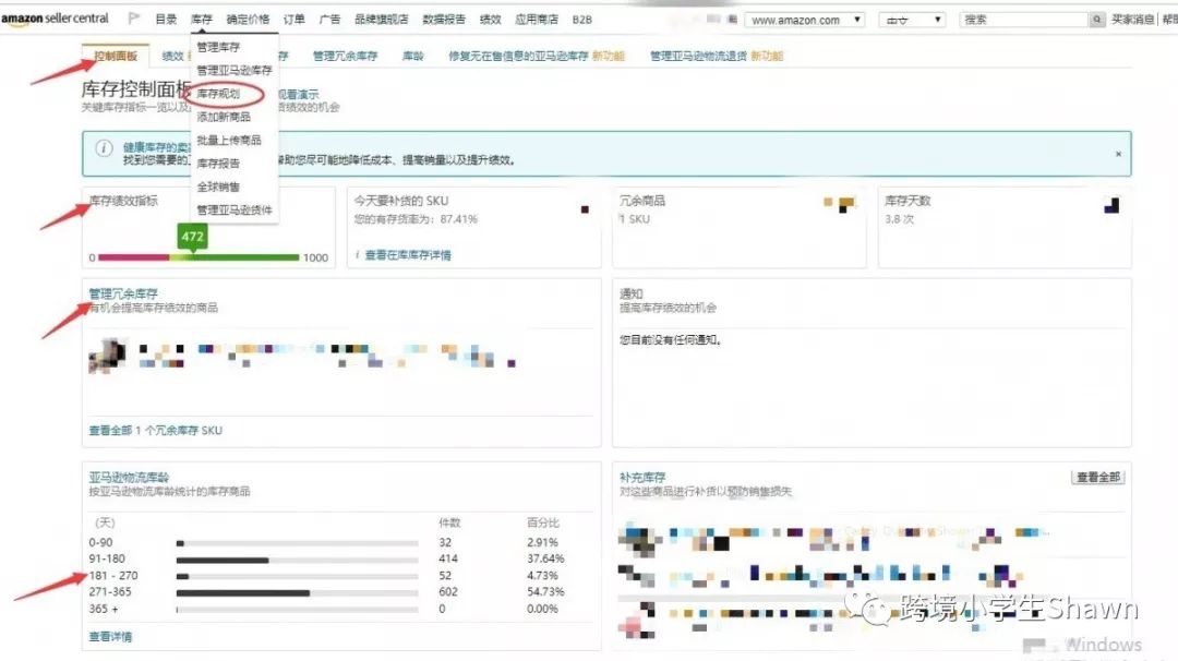 接下来我用自己美国站(目前美国站的后台功能最全面,其他站点均可参考)一个账号的后台截图,来详细阐述亚马逊后台最常用的基本操作。有些新手容易忽视的地方我做了标记。另外,还有一些后台的坑是可以在操作前避免的,我写到相应部分会一一列出,请大家务必重视。
