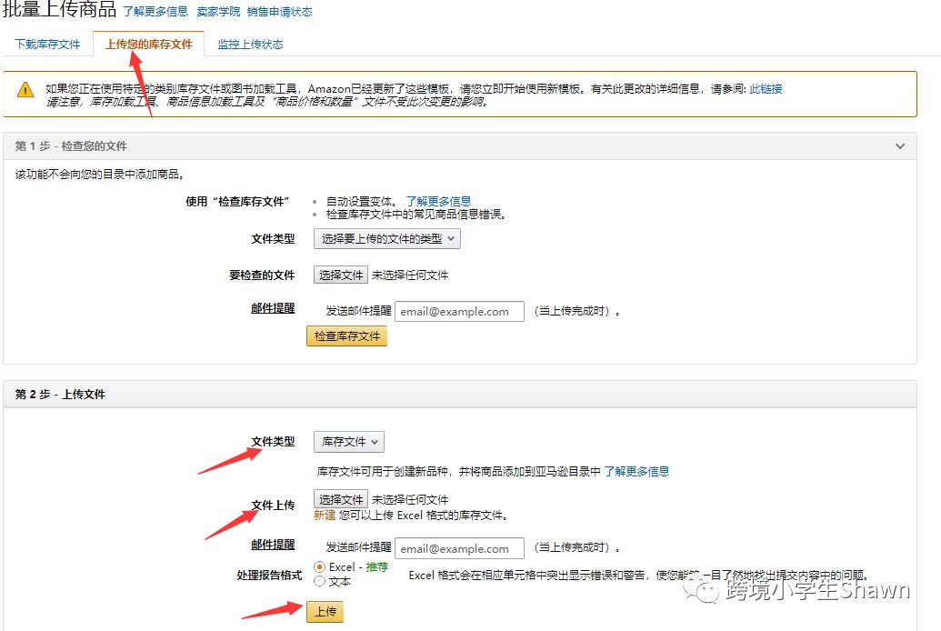 (4)当填写完成后就可以在后台上传模版了。上传之后,会在监控上传状态中显示“报错”或“上传成功”