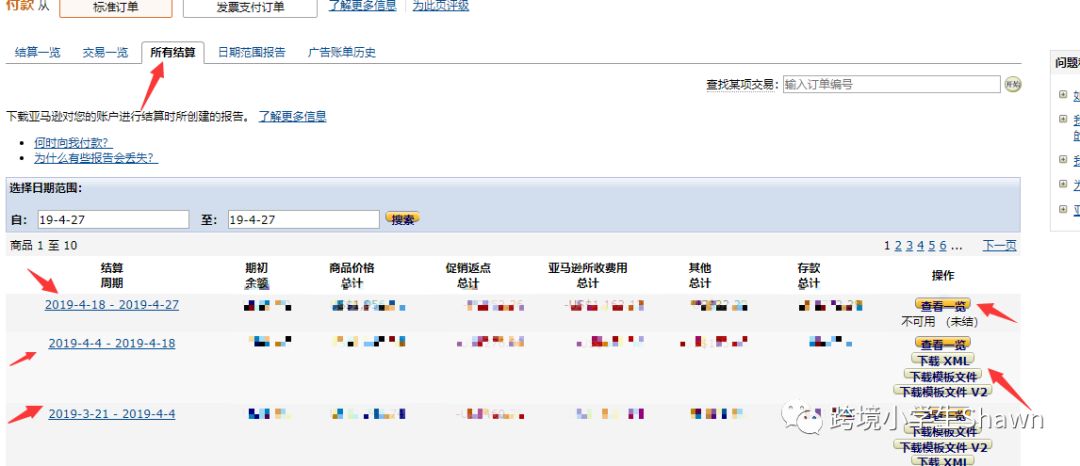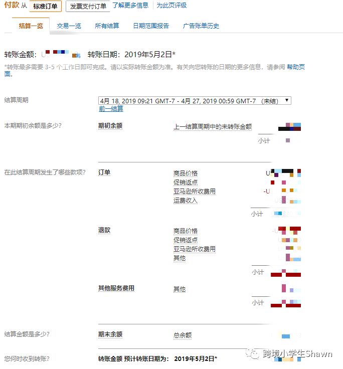 (1)结算一览:可以查看14天为一个周期的收费明细。有些项目可以点进去查看,如发现有任何不对的账目,可以找亚马逊收回;