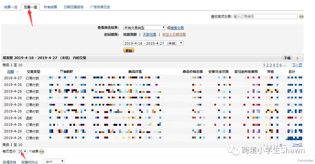 这里面的功能很多新手都会忽略掉,其实每个月都应抽时间查看。主要看店铺和产品的支出费用,很多亚马逊的收费明细都在里面,这对运营有很大帮助