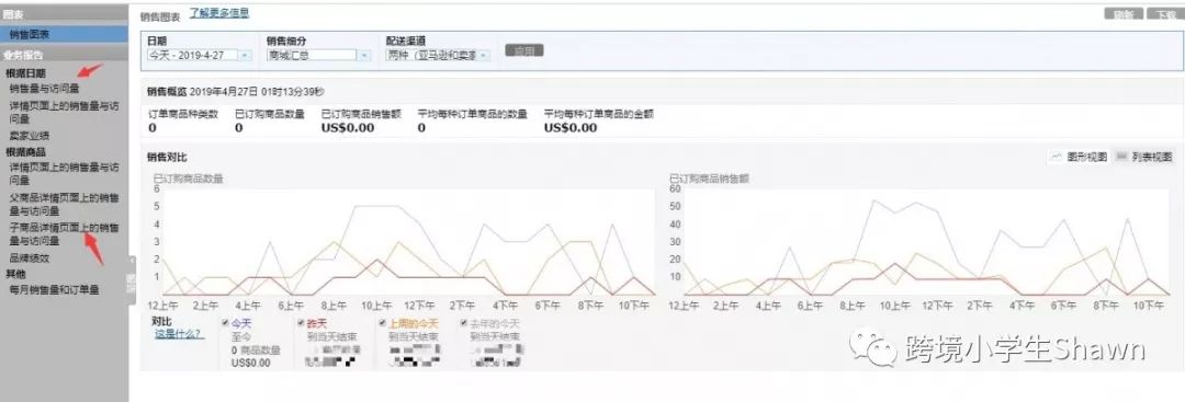 这里提供多种报告,可以在左侧的导航栏里查看店铺和产品的数据。这里面都是运营的精髓,大家一定要经常查看分析