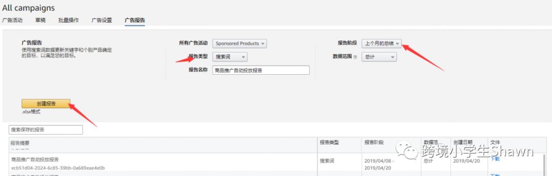 (4)日期范围报告和广告账单历史,这里所生成的报告,其实在前面的明细里都有,区别是可以分开下载明细