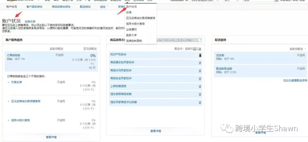 绩效显示整个账户状态及有无违规。重点说一下店铺的绩效和业绩通知,以及卖家大学