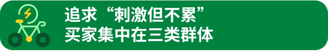 35—55岁的户外家庭群体,男女比例接近。他们更偏好Fat Tire胖胎电动自行车,稳定性强、适合多种地形,常用于钓鱼、露营、海滩骑行等户外活动。