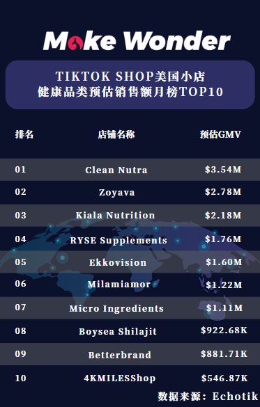 据Echotik最新数据显示,在TikTok Shop美国小店健康品类销售额月榜中,Milamiamor凭借销售促进肠道消化吸收的减肥产品排行第六,预估销售额近122万美金!