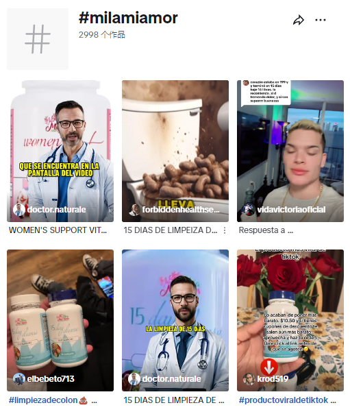 在TikTok上搜索品牌关键词“milamiamor”可以看到持续有人在分享相关产品。无论是测评博主,还是素人博主,都会在发布视频的时候加上这些标签。