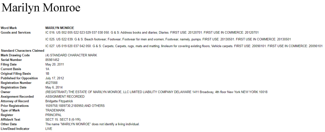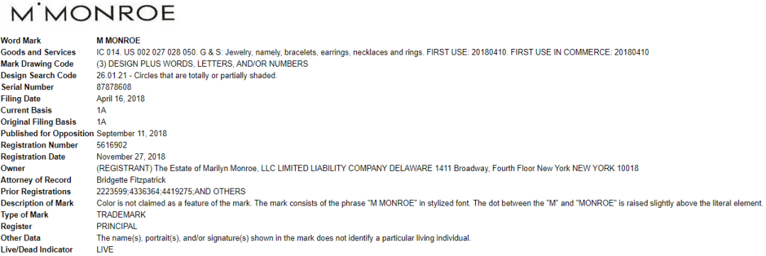 近期有不少名人维权案,例如Marilyn Monroe玛丽莲·梦露,Marilyn Monroe、M Monroe、Marilyn等商标不可出现在listing和产品图片上。