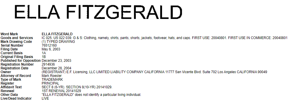 再如美国歌手、演员ELLA FITZGERALD艾拉·费兹杰拉,Ella Fitzgerald不可直接使用。