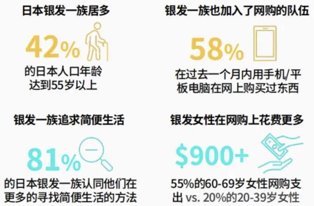 中高龄用户(50岁以上)年均网购支出23万日元,客单价甩东南亚三条街,购买力杠杠的。
