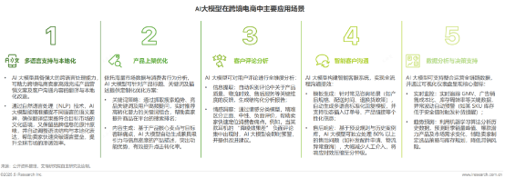 借助AI等创新技术手段已成为出海卖家提升自身竞争力的重要手段和基本要求。基于跨境企业的业务数据,AI应用全面赋能选品、营销、履约、客服、决策等多环节,帮助跨境企业突破语言障碍与效率瓶颈,提升全球化竞争力,高效适应复杂的国际市场环境。