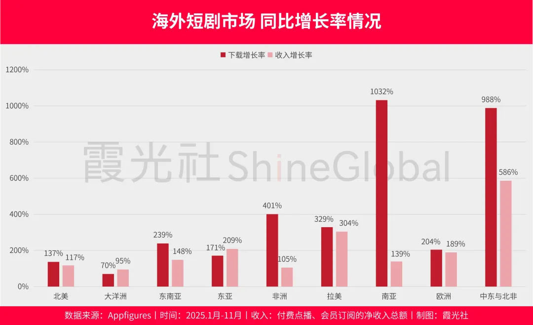 不过,赛道中也浮现出部分新机会点:例如深耕YouTube渠道的短剧运营厂商,年利润已达千万美元级别;东南亚、拉美等新兴市场的付费潜力被逐步挖掘,成为中小玩家的突围方向。邓先耀预判,未来行业将形成“头部厂商攻坚高净值市场、中小玩家深耕中长尾区域”的格局,而本土化内容供给不足,仍是全行业亟待突破的核心痛点。