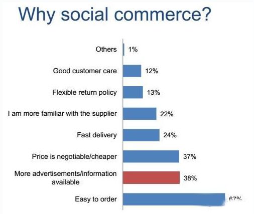通过社交网站进行购物的比例上升,66%的消费者通过Facebook进行网购,这跟Facebook广告有很大的关系;