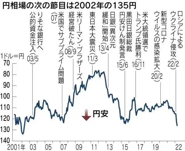 如果从日元汇率的近二十年数据来看(如下图),拐点貌似即将到来。因为日元对美元的汇率最低最低就是2002年到过135日元,截至到今天,差不多是126日元。也就是说,如果继续破点,按照现在的汇率情况: