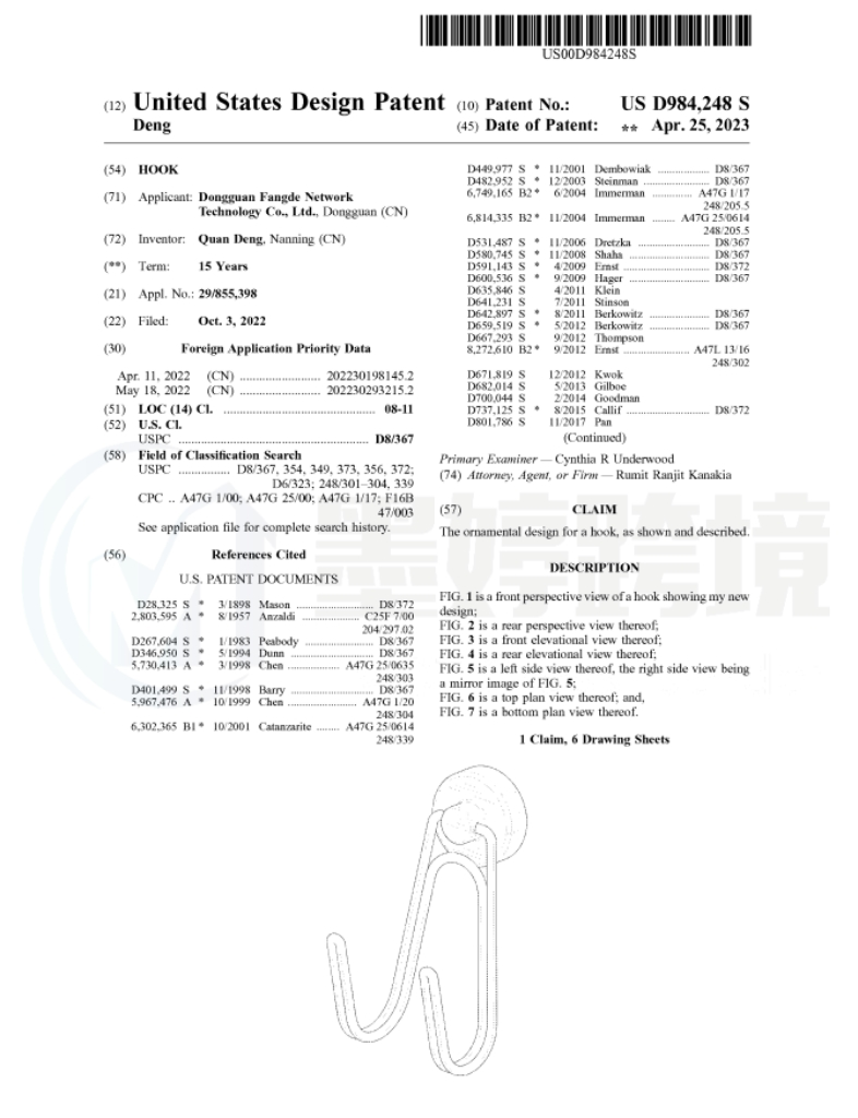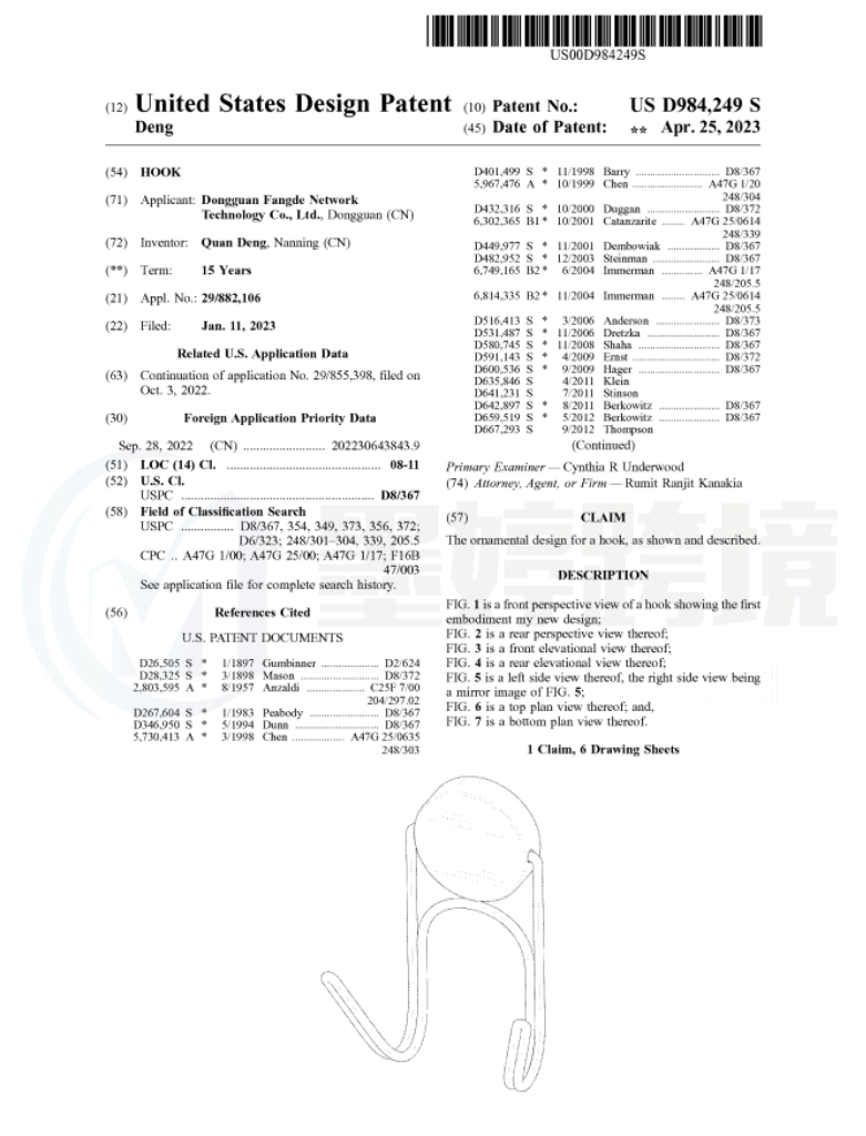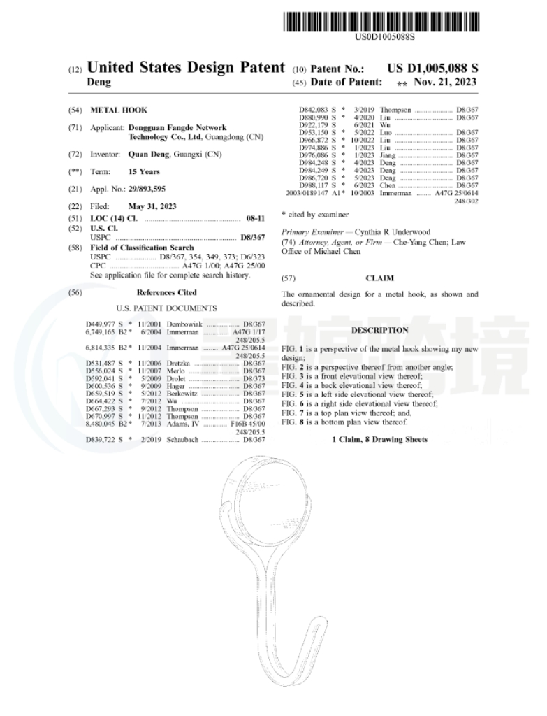 国人又发起TRO!小小粘钩竟有3个外观设计专利?另有全新版权图维权,卖家速查!【25-cv-8314、25-cv-8277】