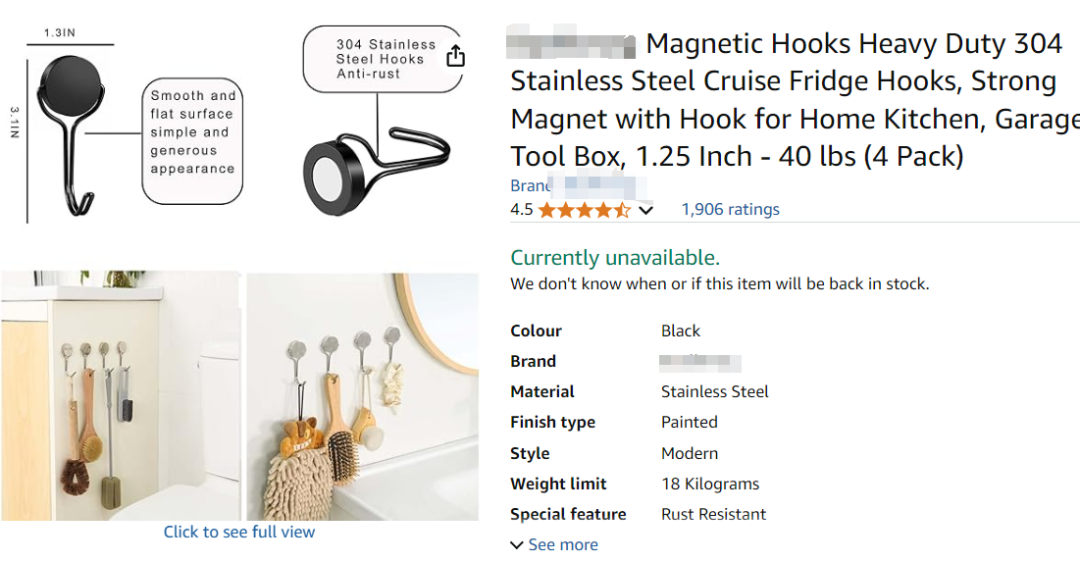 本次维权的磁性挂钩产品在功能性与美观性之间取得良好平衡,适用于厨房、浴室等多种家居场景。公司目前持多项美国外观专利,用于保护其产品在北美市场的设计权益。