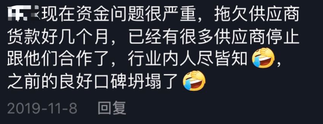 但从去年开始,就已经有供应商陆续抱怨,称这个大卖资金问题严重,拖款好几个月,很多供应商停止合作。