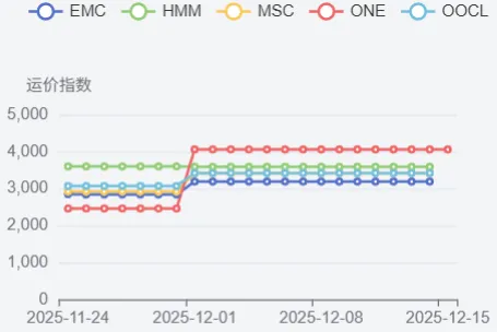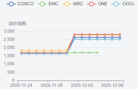 12月月初,南美航线各大船司预计集体推动运价上涨 ,试图拉高市场水平,但具体运价情况还需要持续关注。