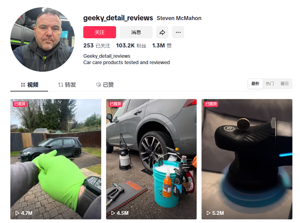 @geeky_detail_reviews是一名【机械与设备】赛道的TikTok达人,主要测评汽车护理的产品。